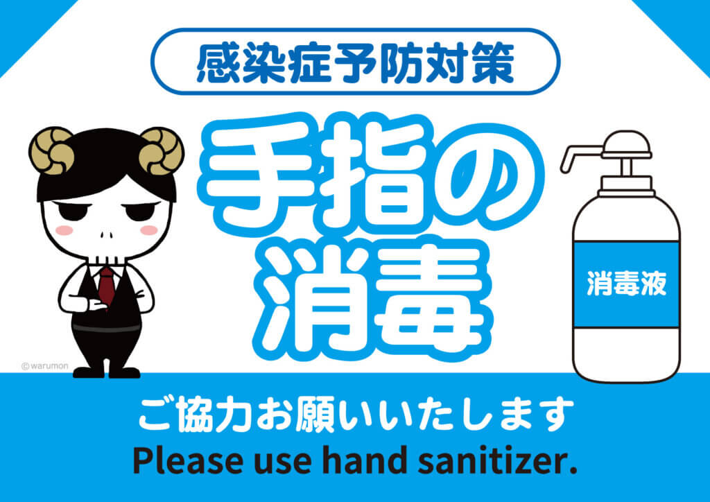 手指の消毒をお願いいたします(横)